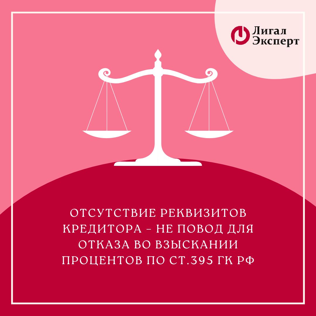 Отсутствие реквизитов кредитора - не повод для отказа во взыскании процентов по ст. 395 ГК…